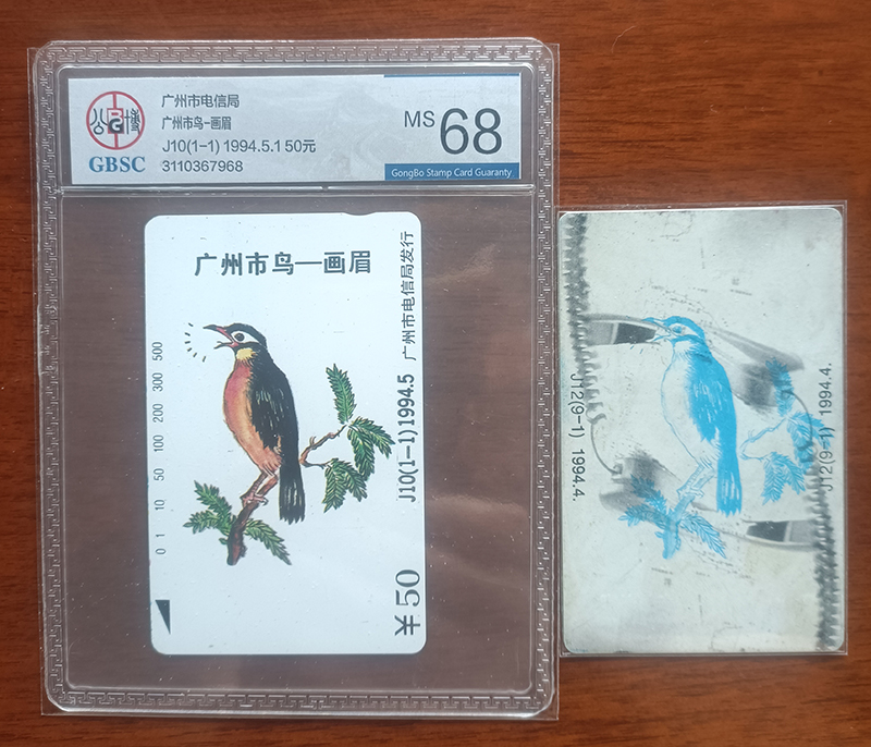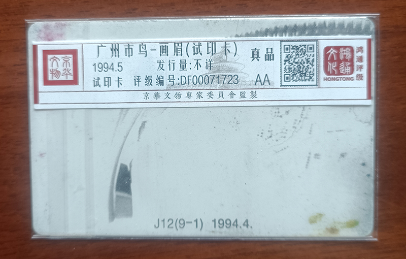 。广州市鸟画眉倒印错卡评级卡和试印评级卡一对