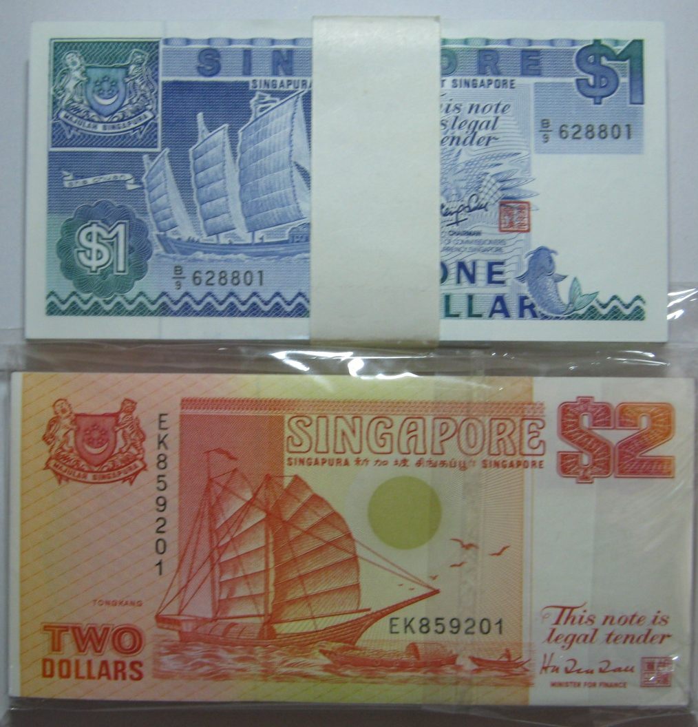 新加坡1元2元船版100连 全新全品,1元=950元,2元=1700元