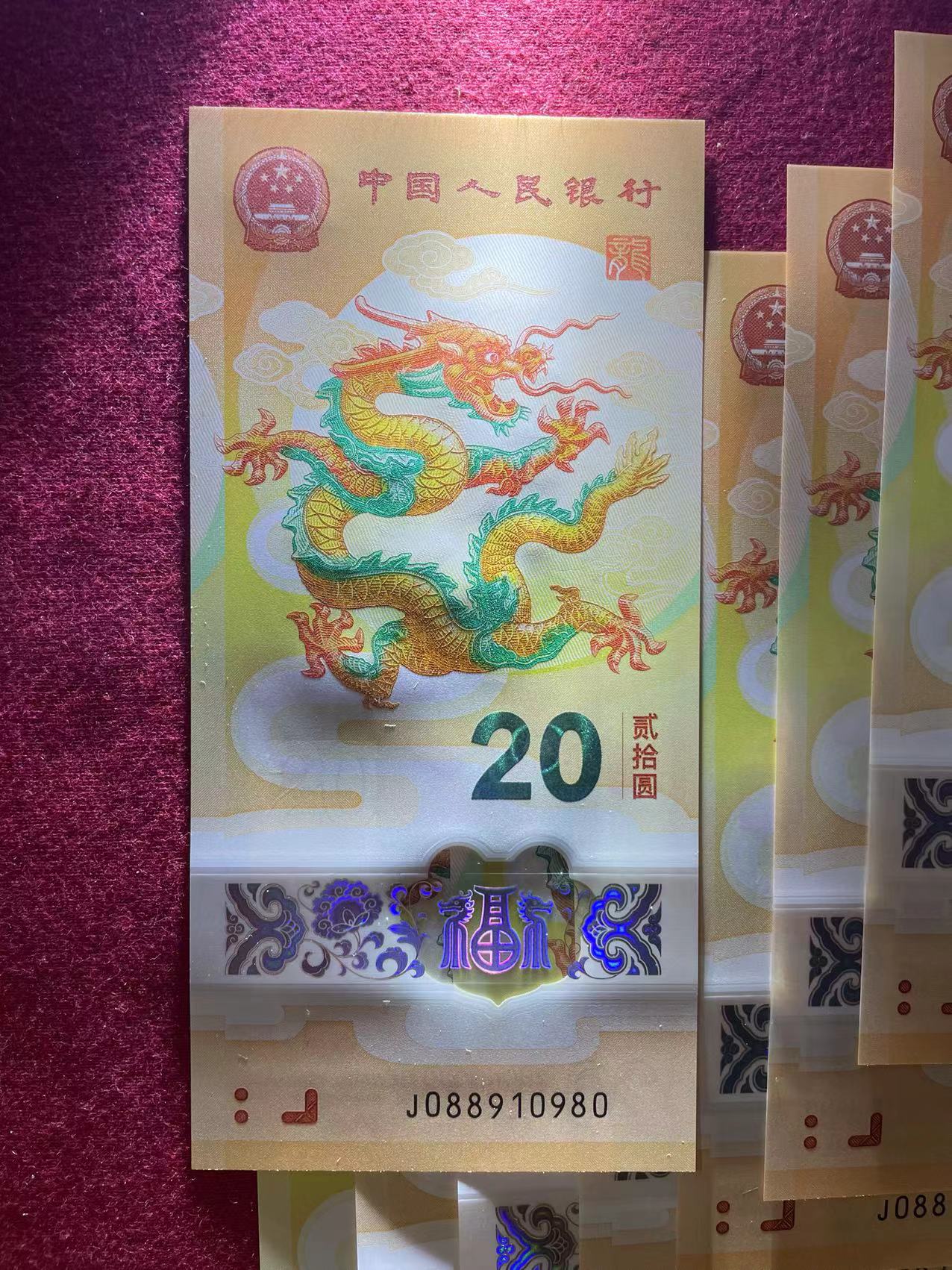 小龙钞带倒置号标十(0189),088910971----088910980,无指甲印、无折痕,可加微信看图,800元三包