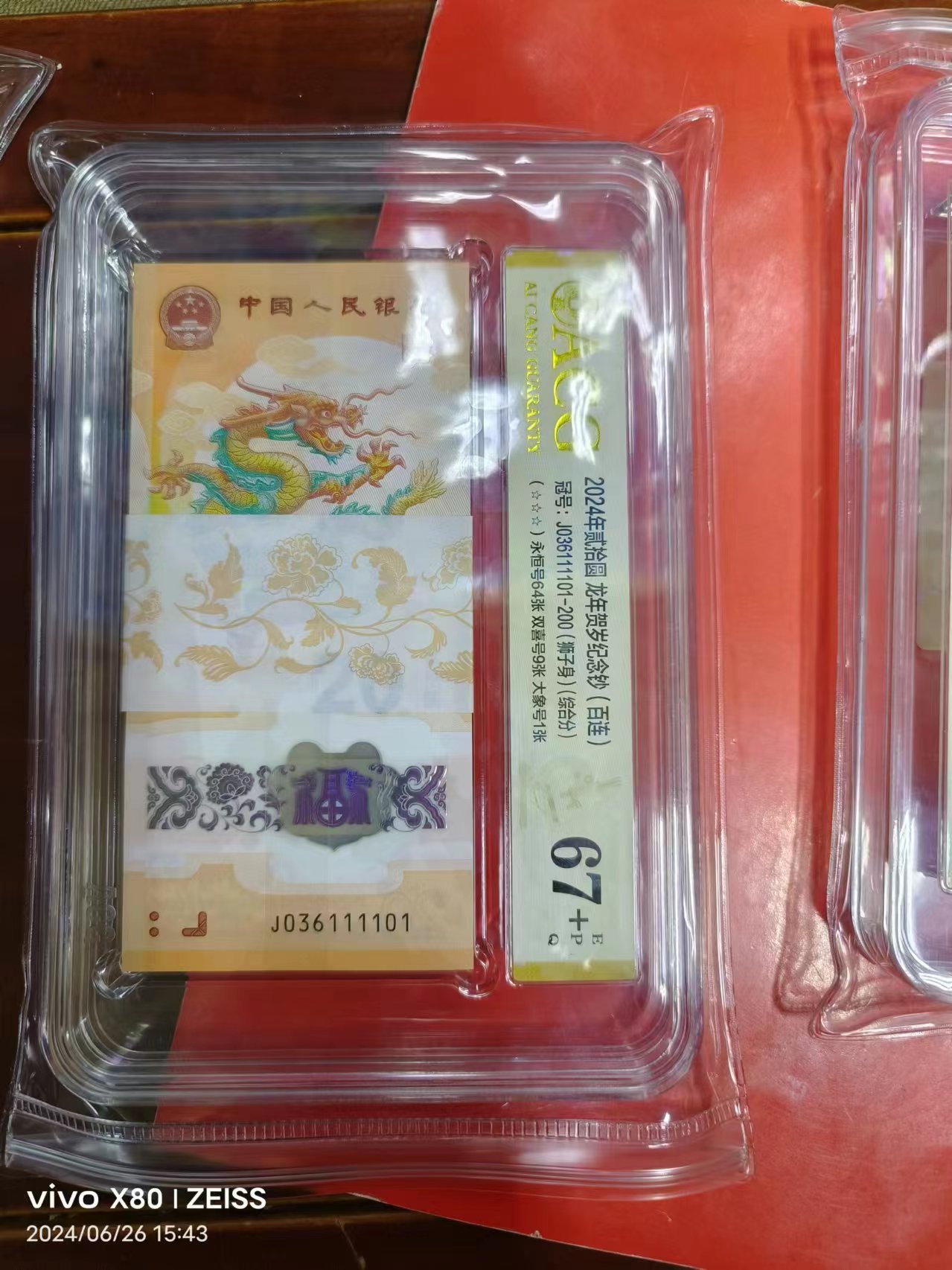 小龙钞一刀百连六同一111111无四七爱藏评级67E+
