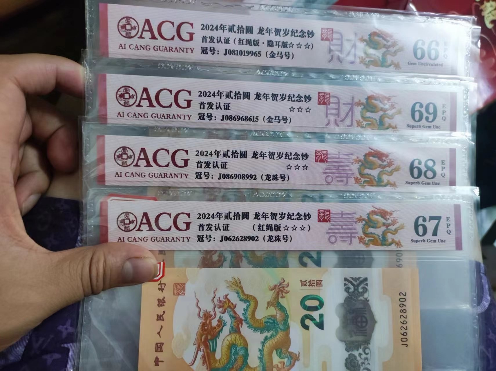 小龙钞4张好号,其中2张朦胧王,两张龙珠号,都是爱藏高分,通走800包快!