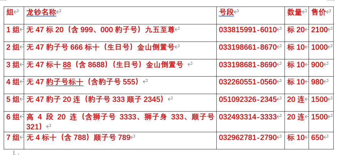 出售龙钞豹子号标十、狮子号标连、生日号、至尊龙、金山倒置、靓号: