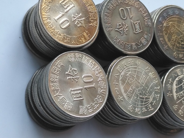 100枚卷拆台湾光复50周年纪念币(有的黄油彩;有底光),齐售不分拆820元包普快!