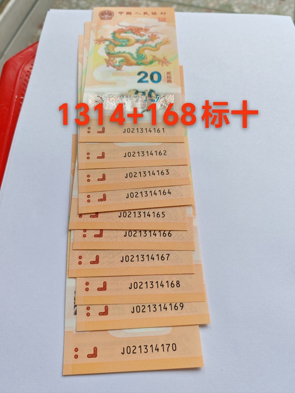 1314168靓号龙钞10张标十3300元