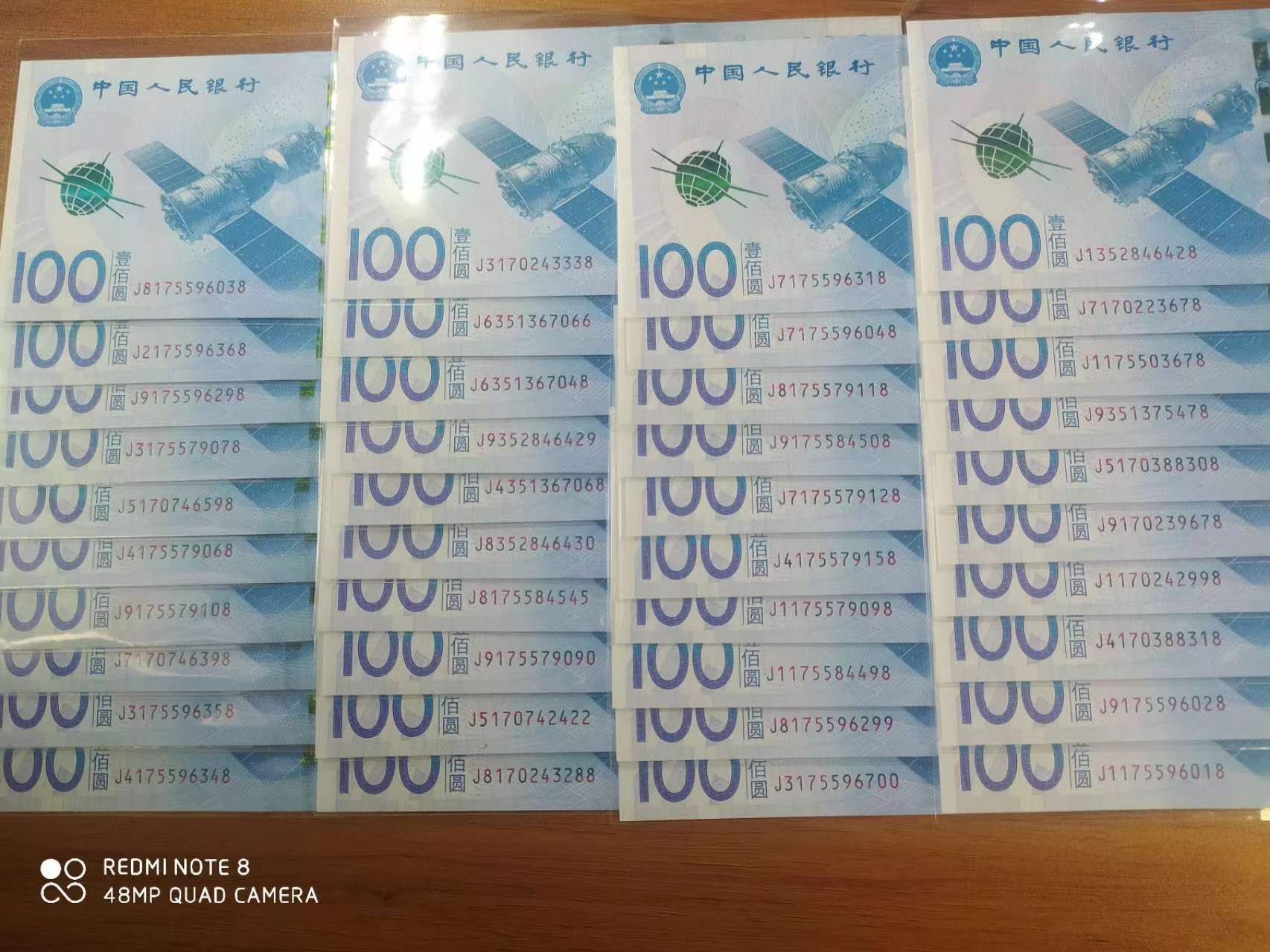新挺版捆拆品像,非回存币,航天钞尾8,尾88,双尾套,小顺,补号,三对子,双对子,双尾等,具体号码见图,按图发货,共120张,面值每张加0.8元枚,共12096元三包顺丰安全到手,联系微信电话13308574731顶帖12小时内有效。
