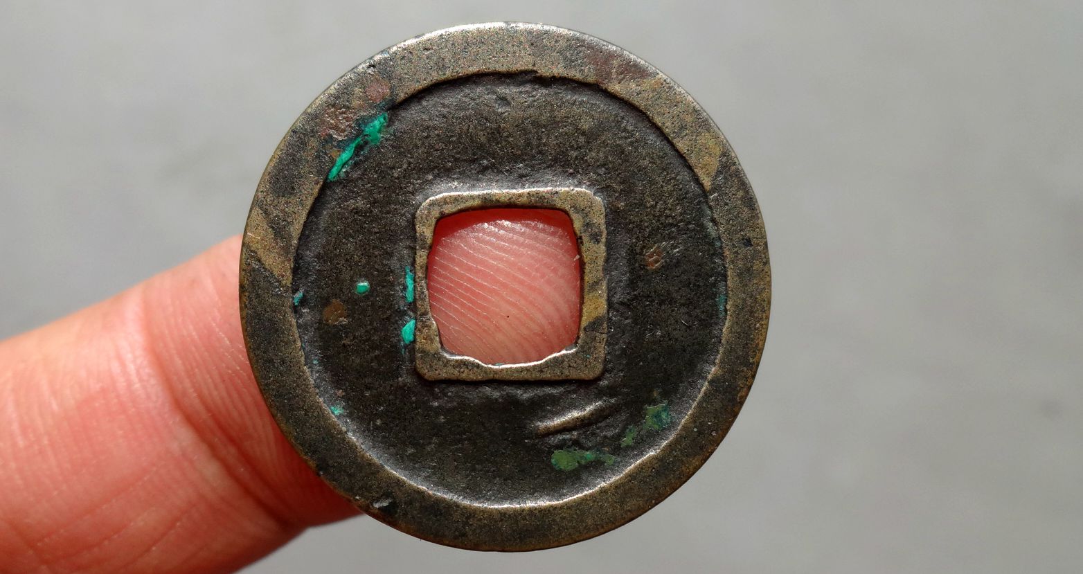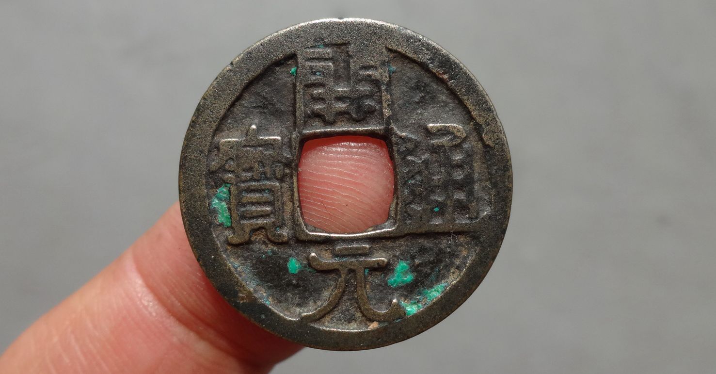 少见开元背右下月,无漏裂,