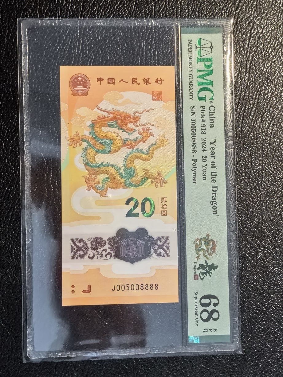 龙钞龙三豹子号8888,058金马王靓号排列,四对半,五行龙 龙钞8888 PMG68