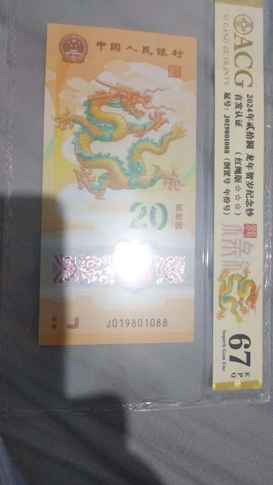 → 小龙钞倒置号尾88年份钞头1980头倒置尾88爱藏评级67分金标