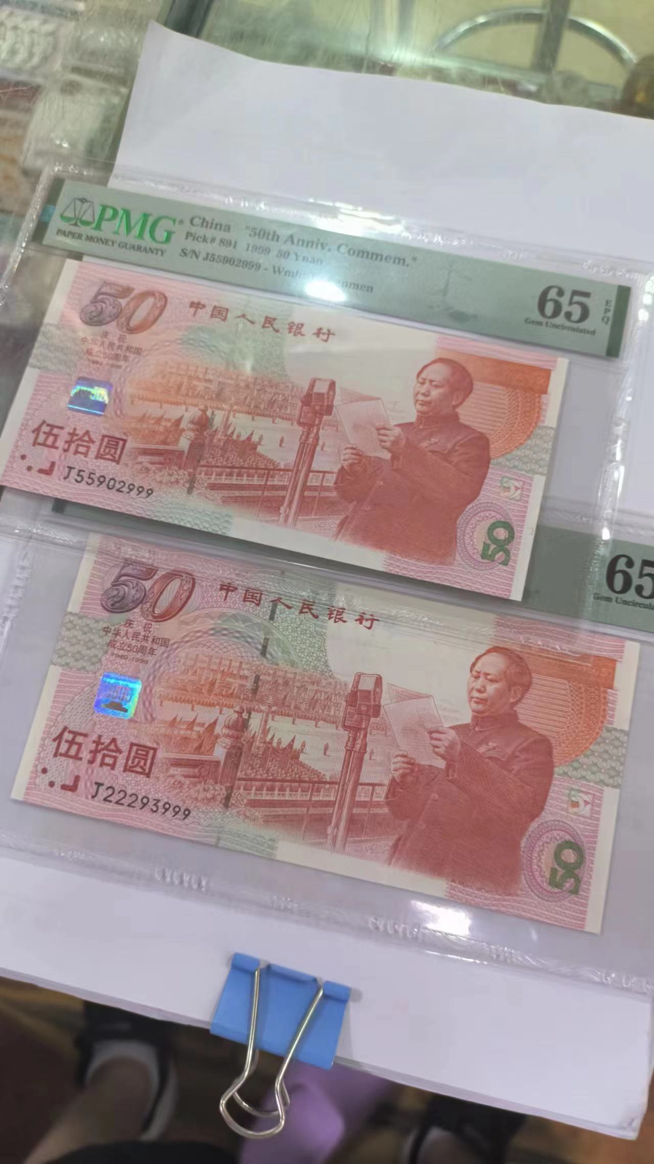 → 售建国钞999--999PMG65----65