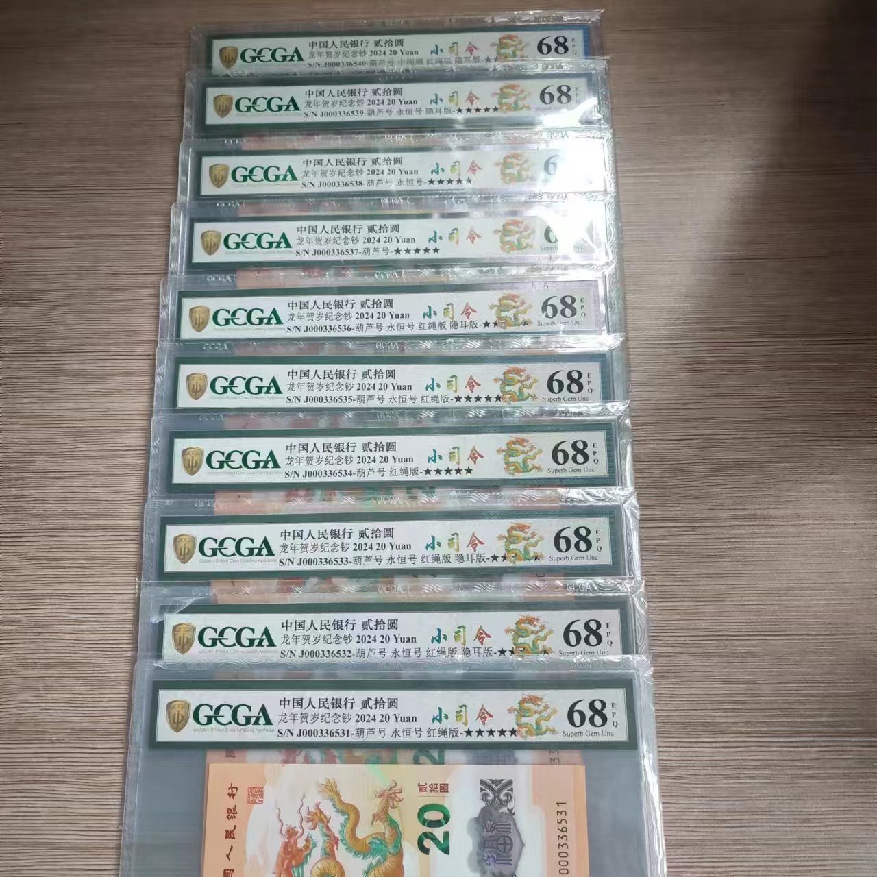 出售小龙钞小司令无47标十1组J000336531-40。国内评价公司评价全部68分如图,售1100包顺丰。