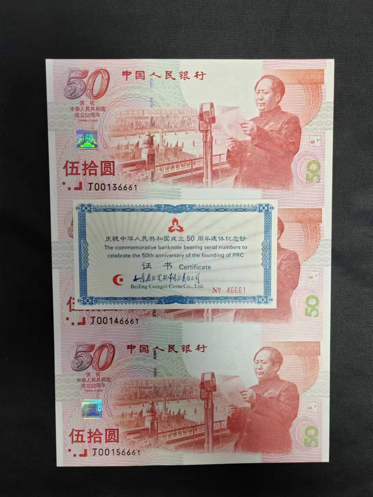 出售绝 品 建国三联体,后四位号码 6661,证钞同号,价格8000元