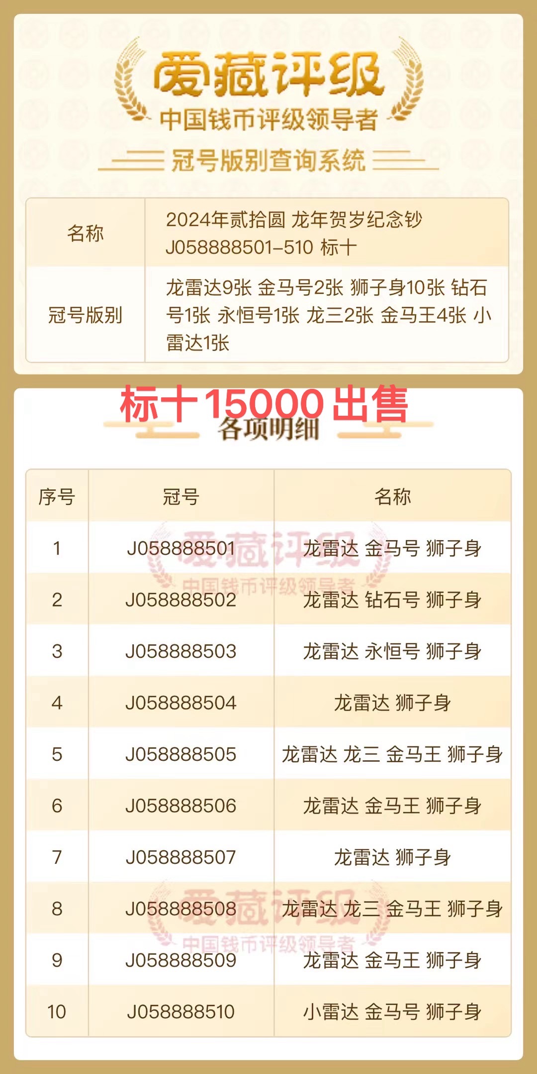 058888508标十,15000出售
