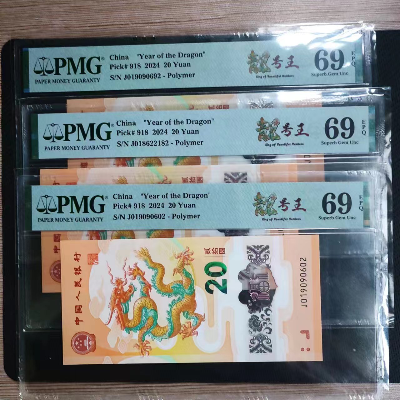 出售3张2024年龙年纪念钞PMG 69分(亚军分)朦胧号。如图,售500/张。一起要包快递,单要邮费自理。