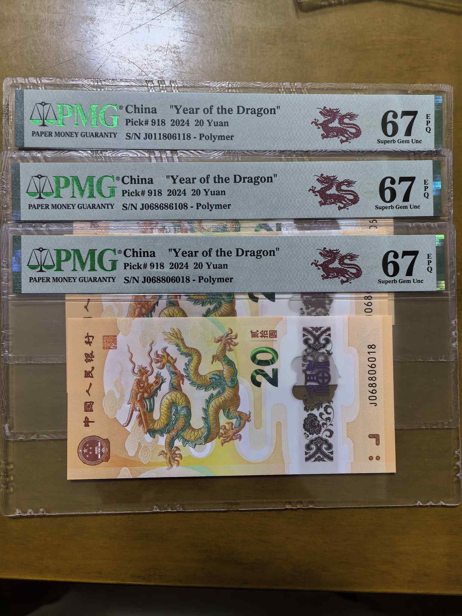 出售小龙钞火热上涨品种0168组合尾8PMG评级三张