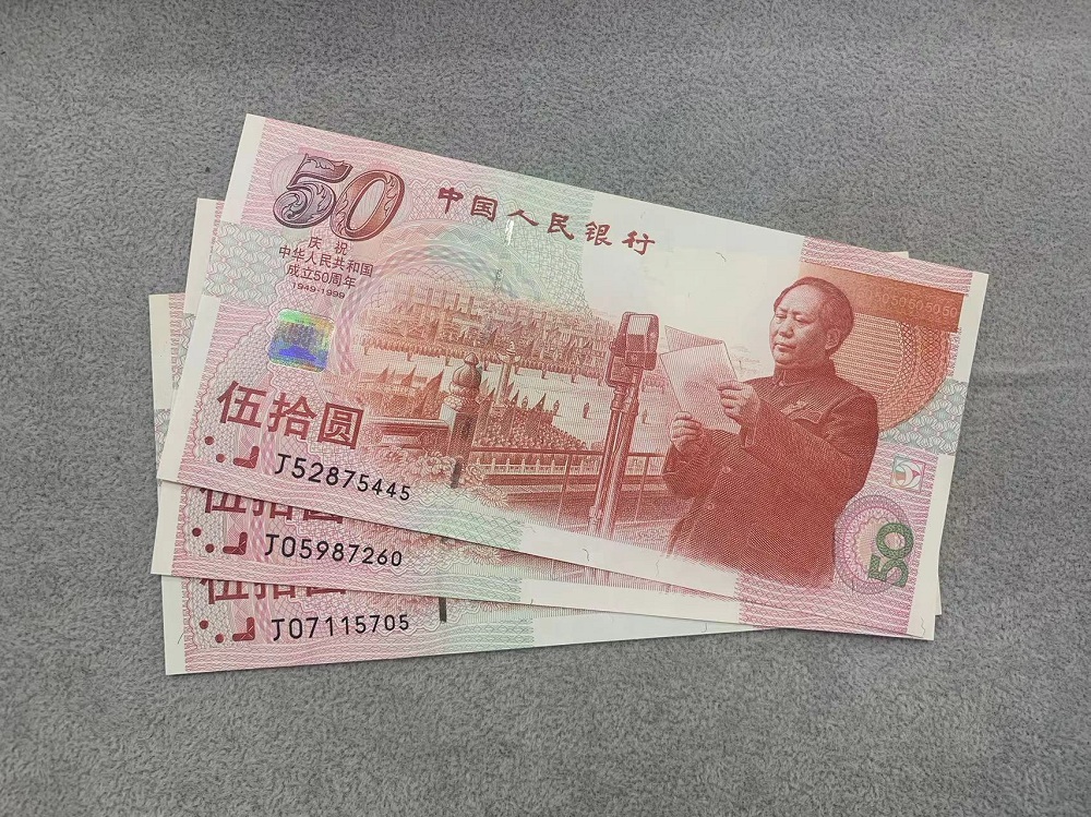 建国钞3张,两张没问题,一张有点黄斑,售价160元一张
