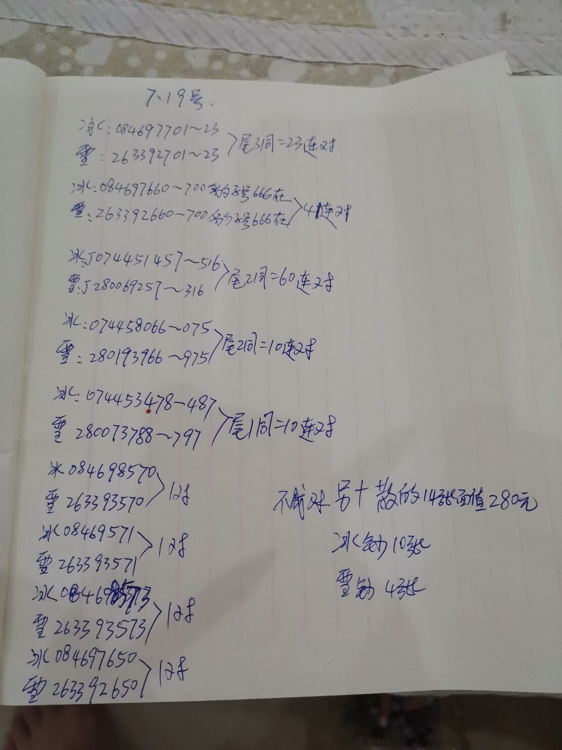 散钞不成套冰钞10张+雪钞4张=14张 面值280.00