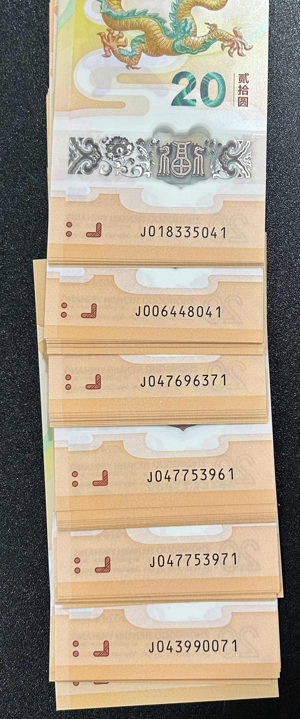 小龙钞40张连号+6组标十,共有3组尾41,
