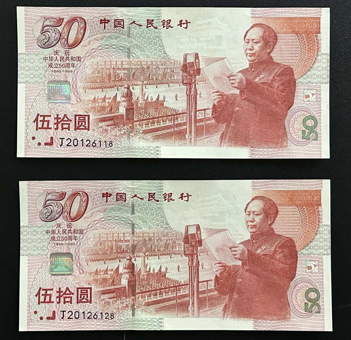 四:建国钞J20126128.J20126118两张朦胧王都是挺版略微显黄,右下角有极微小软折,售价:380元/张