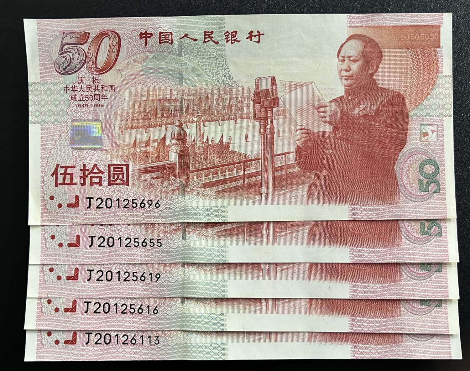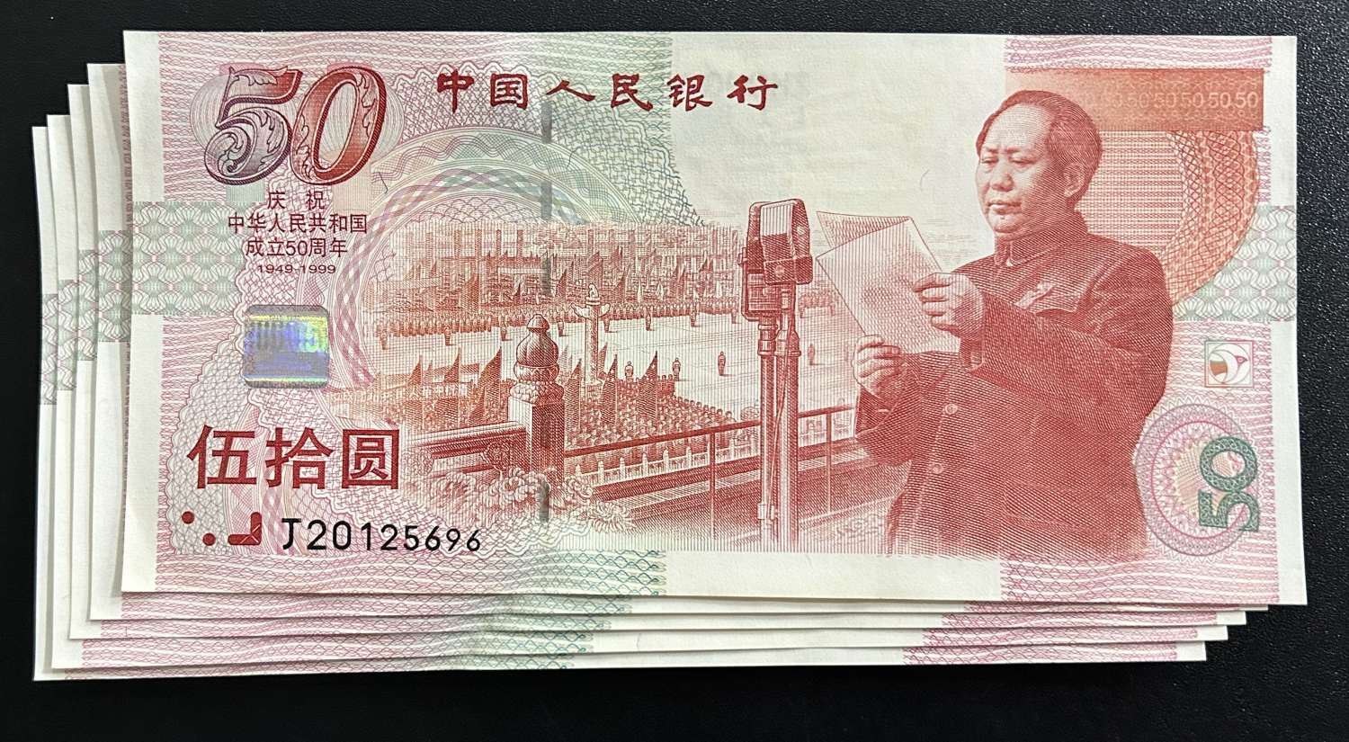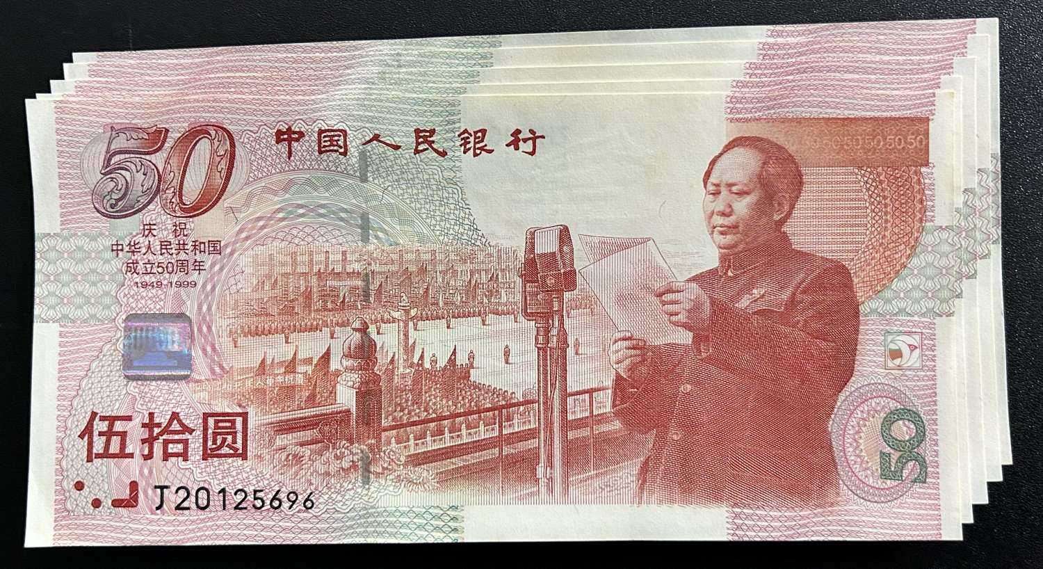 一:建国钞J20125555,全程无347狮子号,全挺版略微显黄,售价:1000元