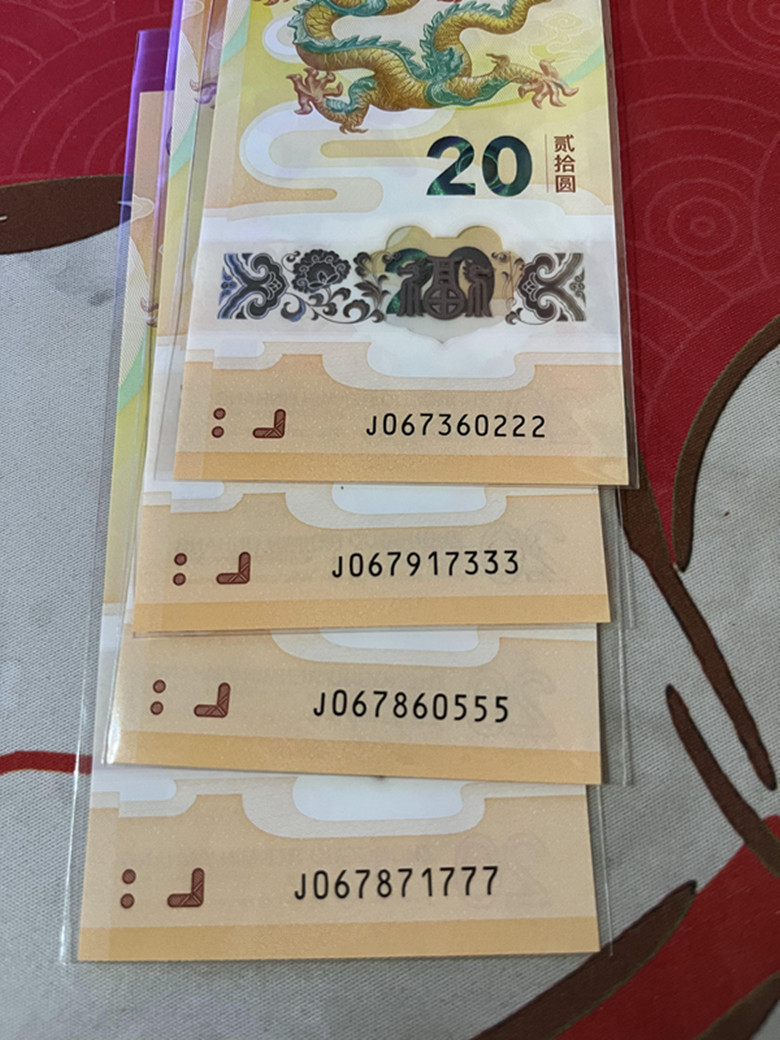 出售图中小龙钞无四标十2组590每组、777标800元、5555单张350有折花红线标出、带四豹子号三张530元。无四豹子号4张800元、以上保证品相。一起走包邮