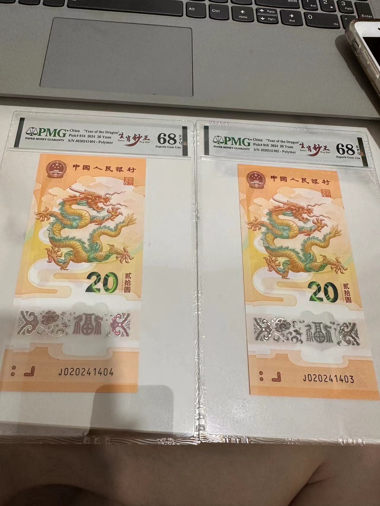 出2张02024生肖钞王PMG68