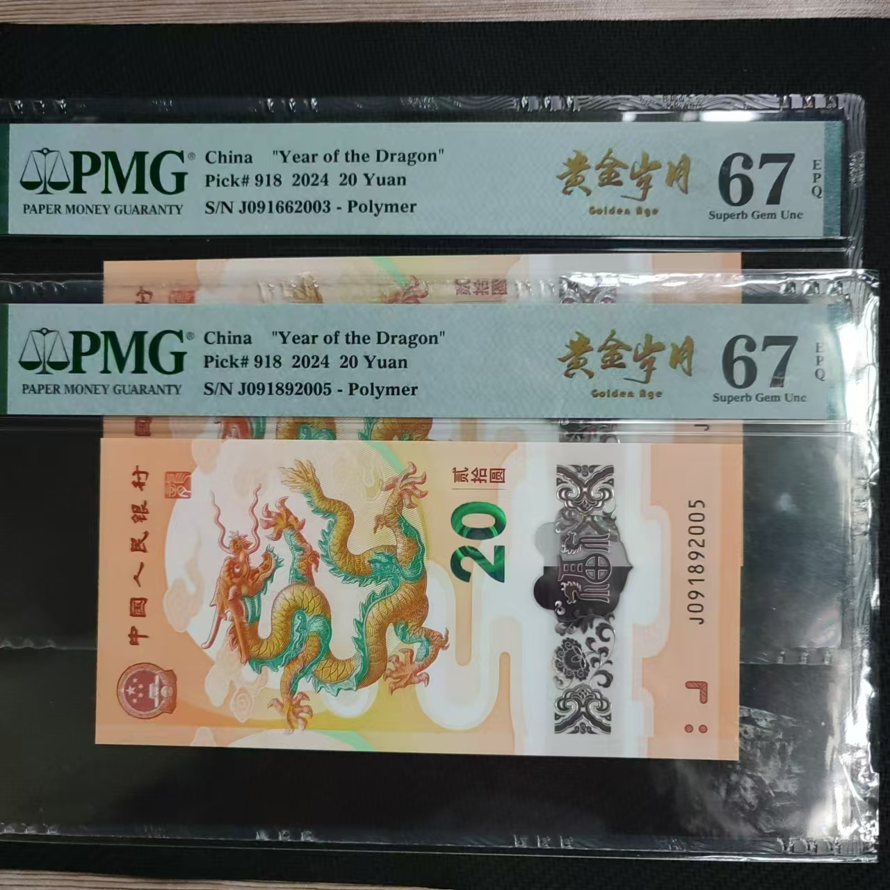 出售2张小龙钞PMG67分年份号,如图,售250/张,一起出包快递。