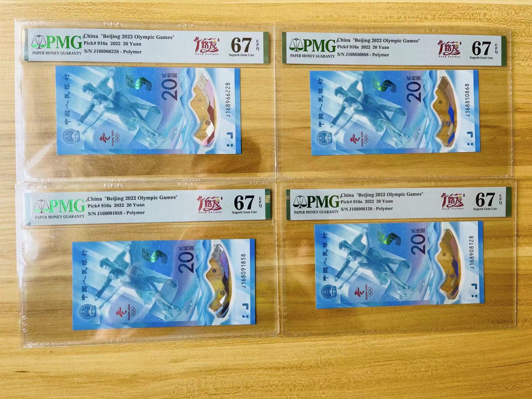 便宜出4张冬奥168头无347和无3457尾8美评67分,