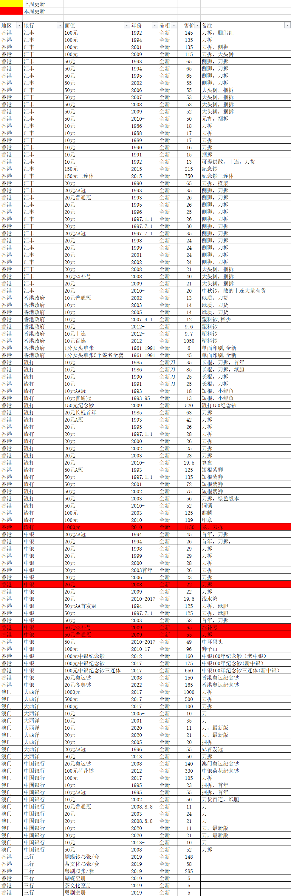 长期批发香港澳门台湾纸钞塑料钞纪念钞,汇丰渣打中银大西洋