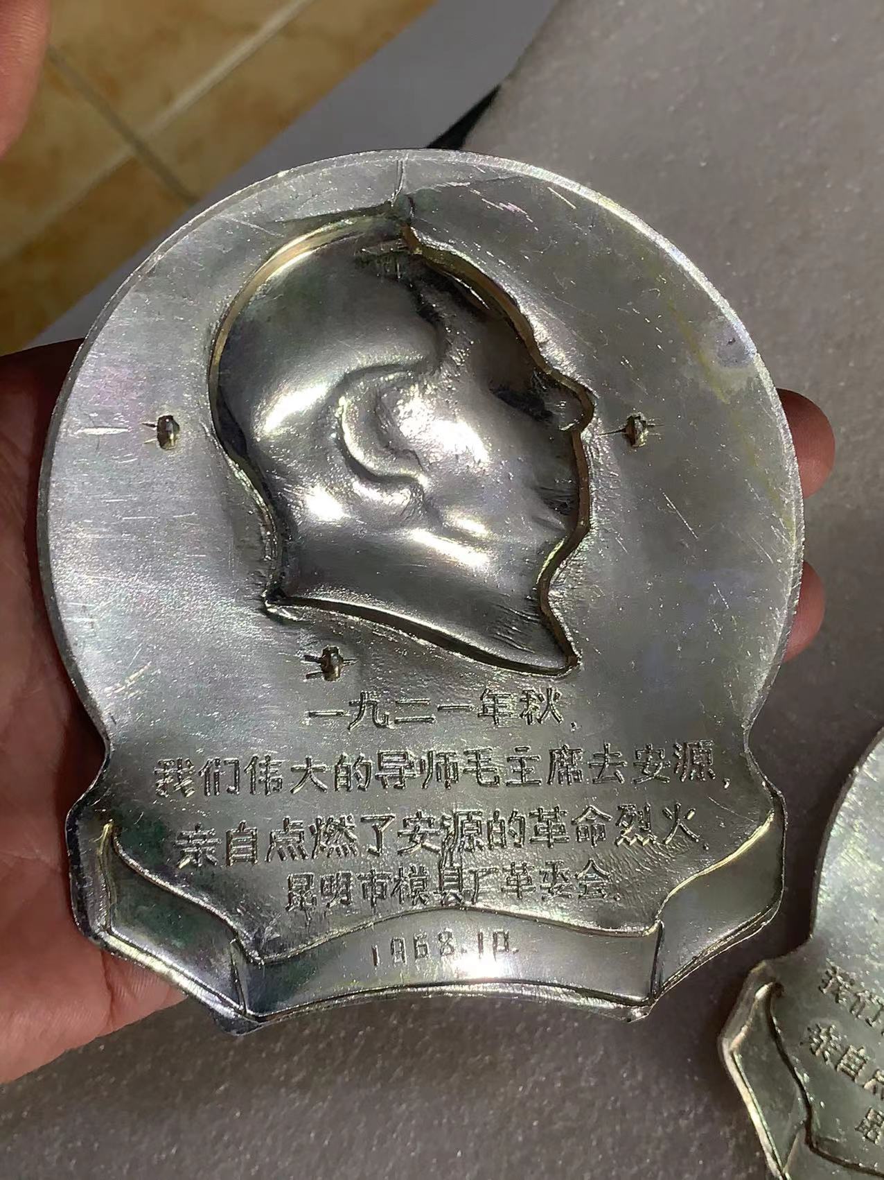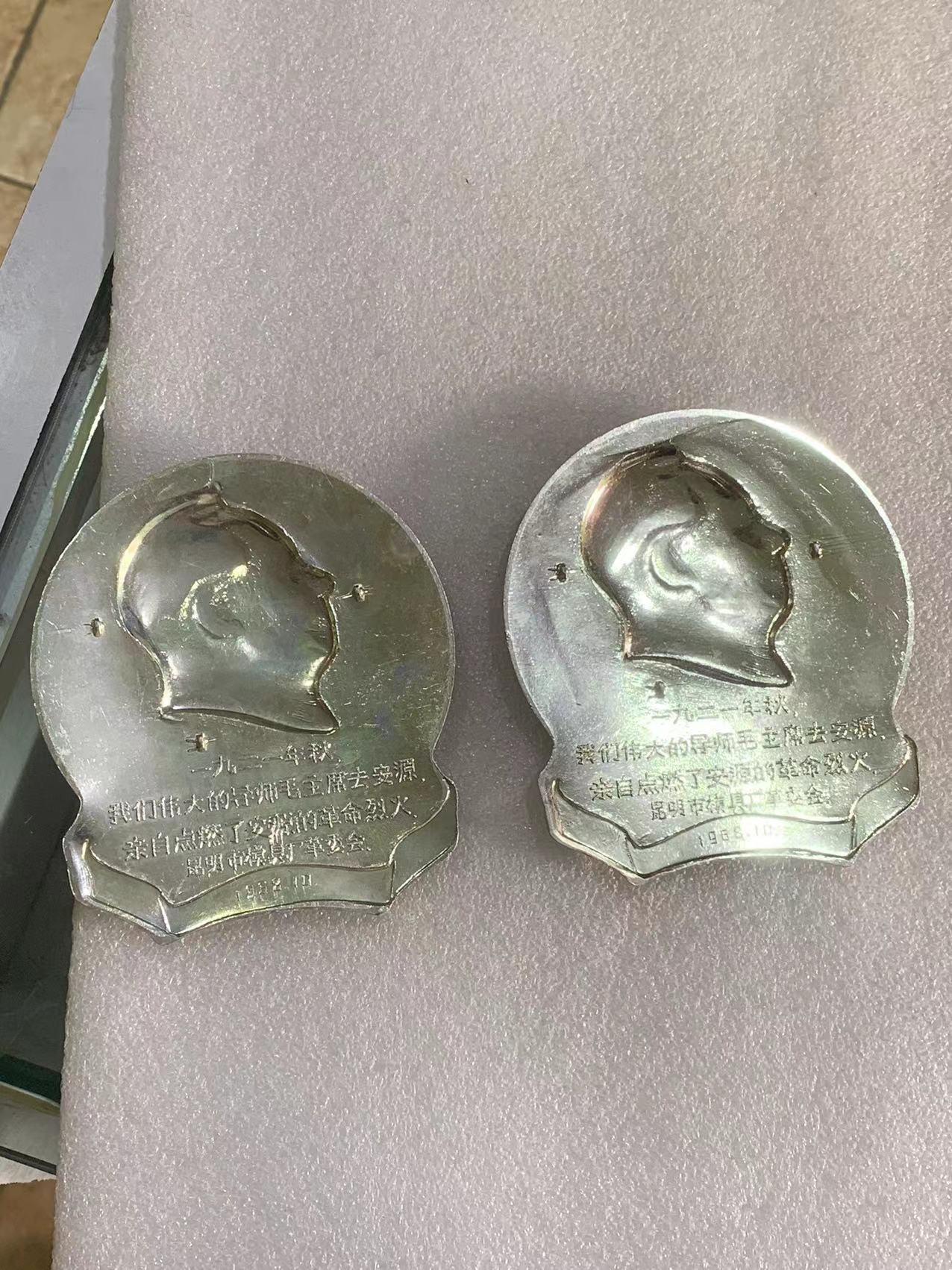 → 出2个美品毛主席去安源大铝像章