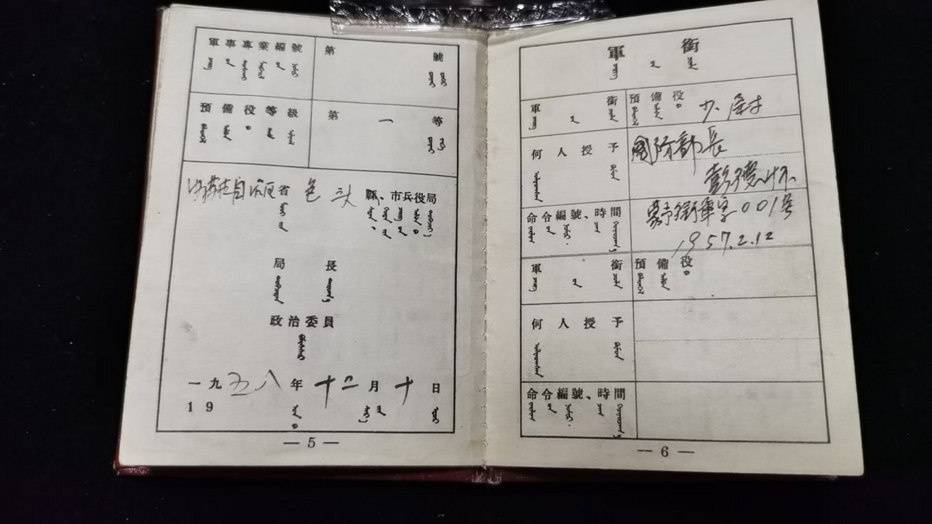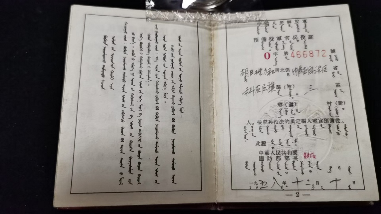 本,蒙汉双语军官证,