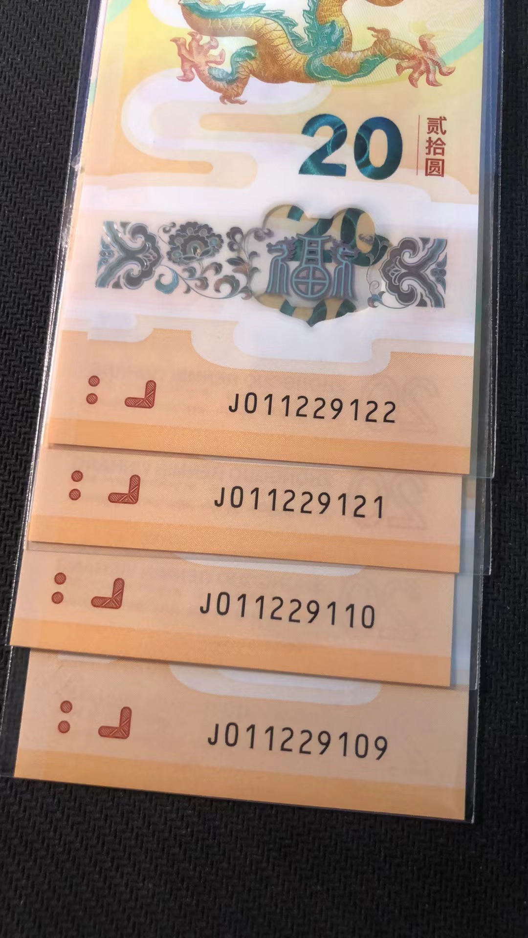 小龙钞0129龙四朦胧号 4张 含一张双尾 1400 通走 包品包邮