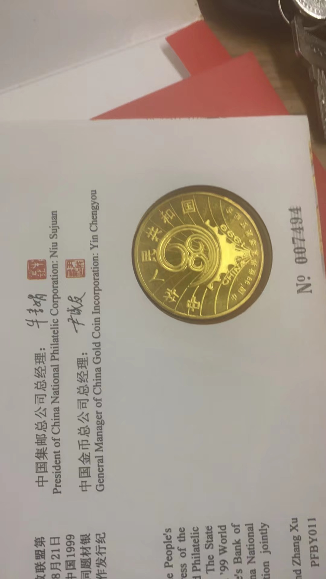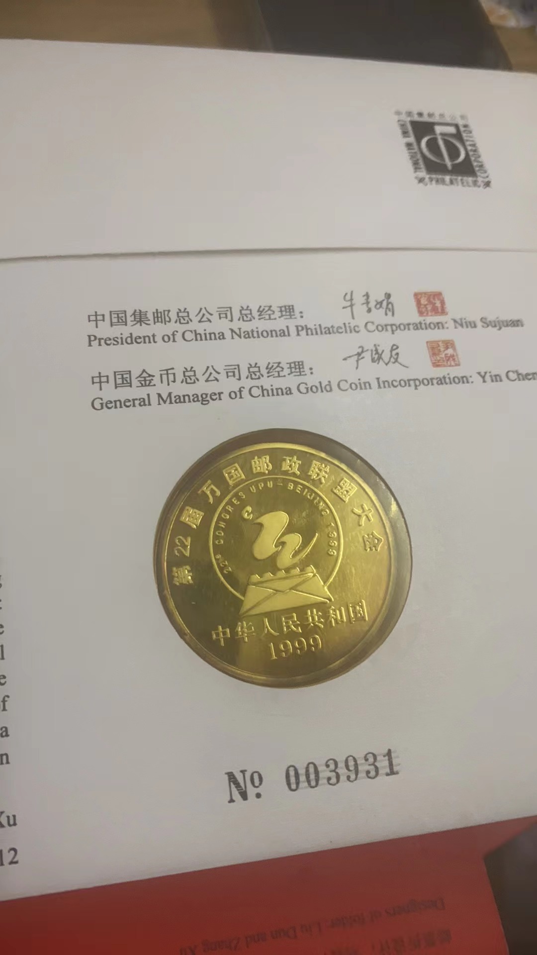 → 万国邮联99世界邮展银币首日封装