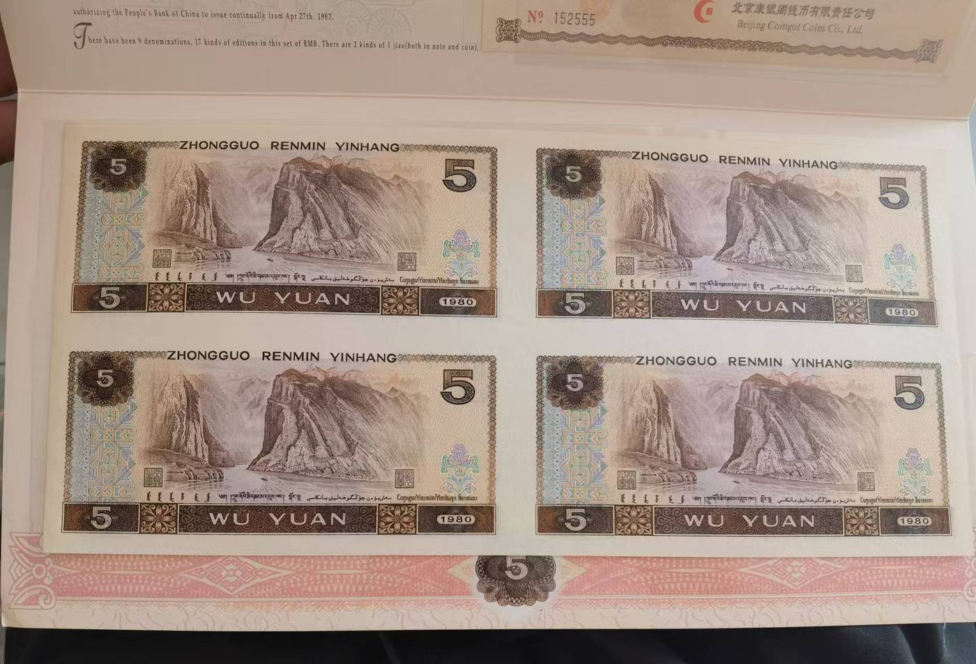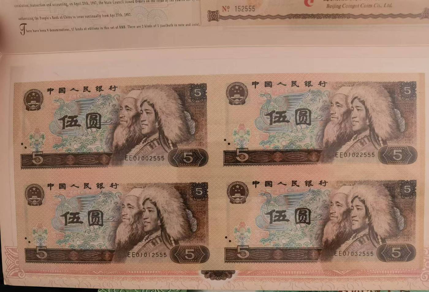证书对号,五元边上有点脏,灯下无斑