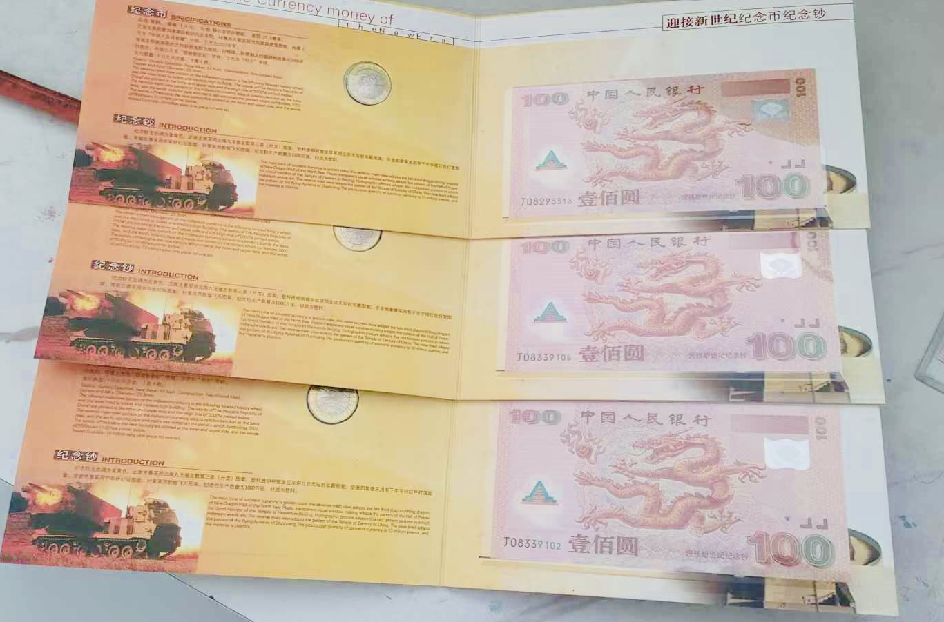 → 售大龙钞无4.7三张带币册
