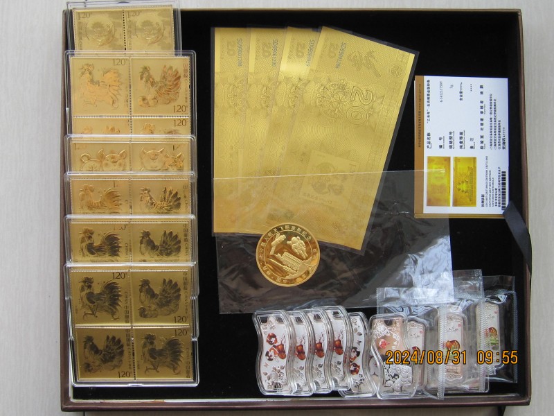 邮票金12克,羊钞8克,金章4.81克,总计24.81克,570元/克,银90克,6.8元/克,包邮一起.
