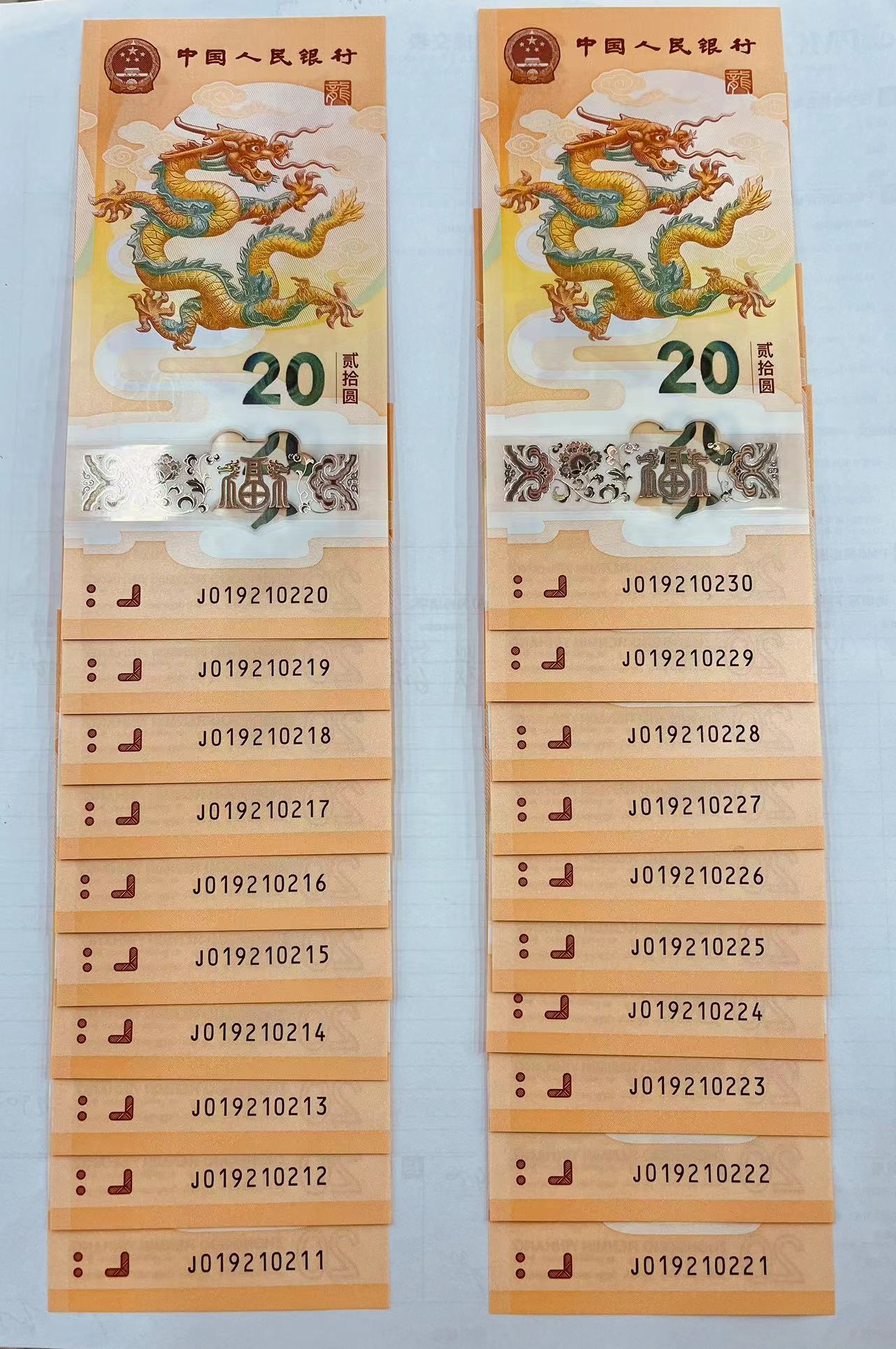 → 出售朦胧小龙钞标准20连号