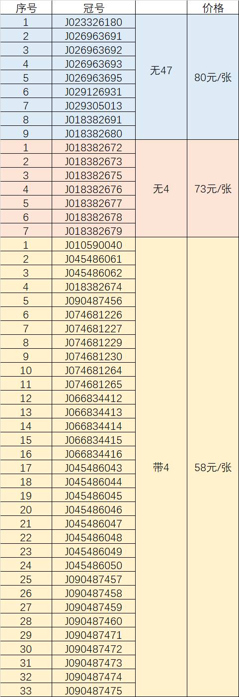 出49张散钞,含无47,无4,带4