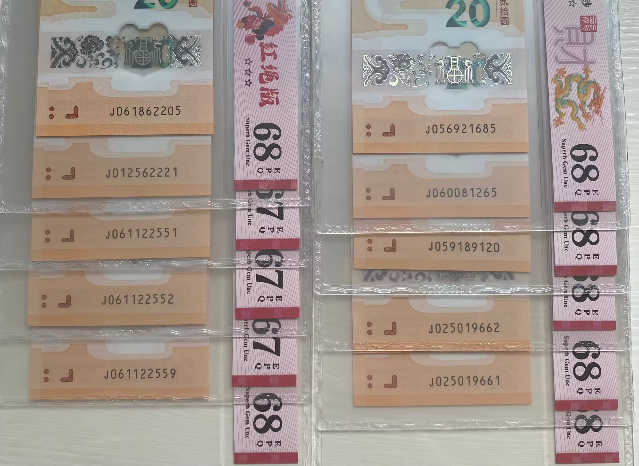 出爱藏评级无347散张10张,都是好号,其中68分7张,67分3张