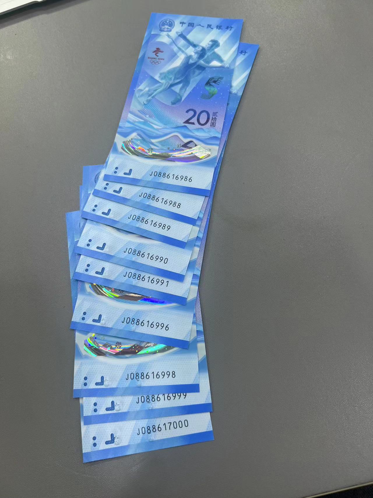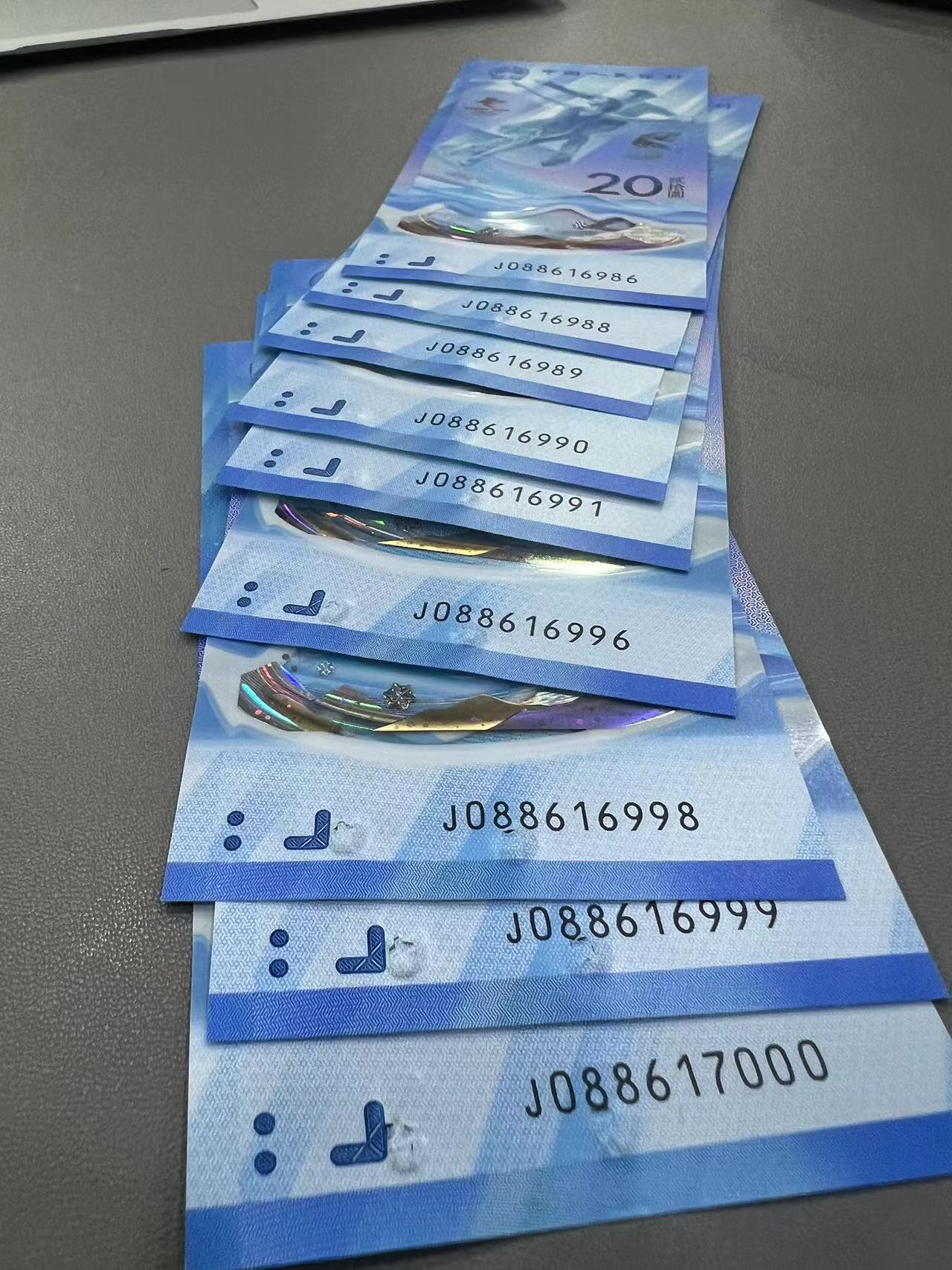 出售有瑕疵的冬奥钞倒置号几张,后面几张瑕疵有点重,前面几张比较轻微,如图,通走每张50包快。