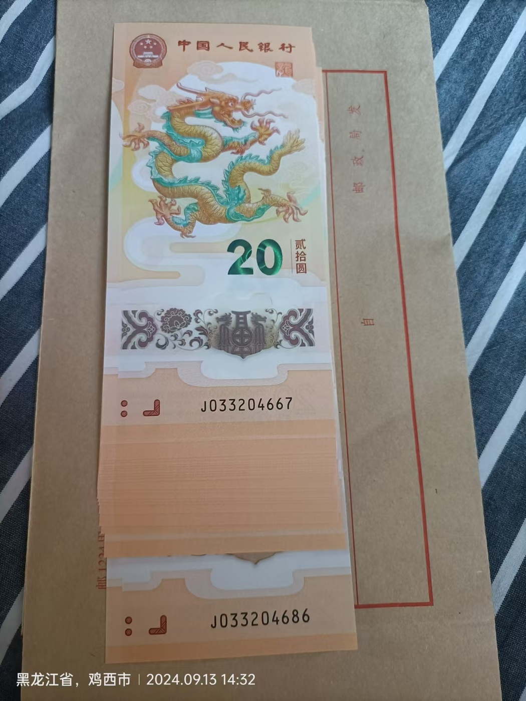 → 带4小龙钞54一张20连号