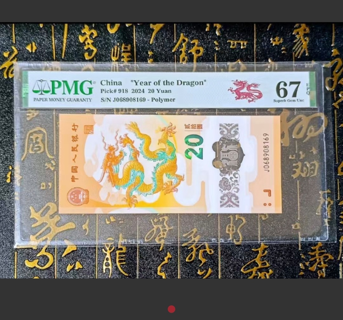 龙钞倒置PMG67E,尾01689双叠五福,少见漏出。