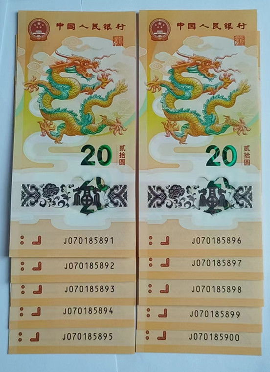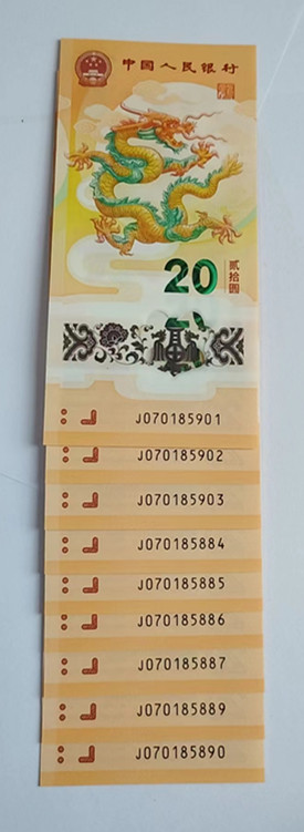 20连号拆出来的(非标二十)。号码: 070185884-070185903. 其中有无4标十尾5891组。含尾95,99,00. 这一组售750元。9张散的售58元一张。需要可以一起带走。
