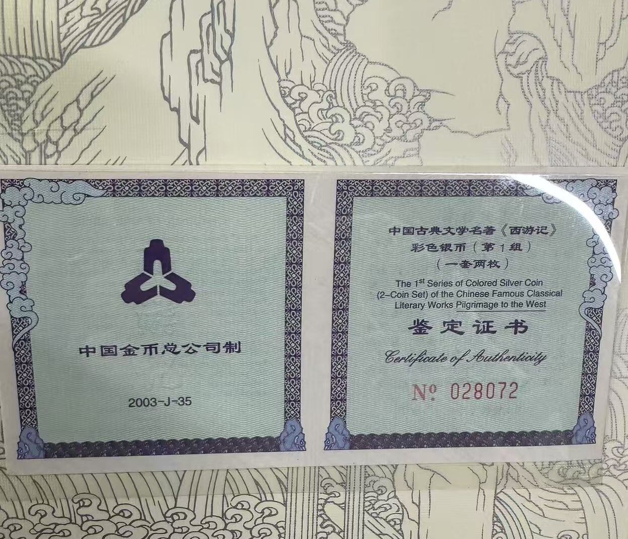 → 出售西游记彩银币第一组特价1288元证书无4
