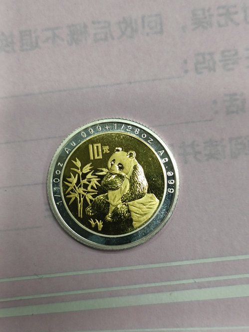 低售1996年熊猫1\10+1\28盎司金币银圈,双金属币