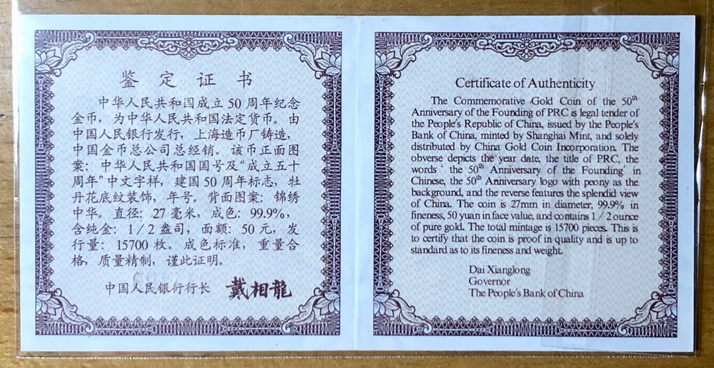 ▇▆ NGC PF69 建国50周年1/2盎司金币 ▆▇