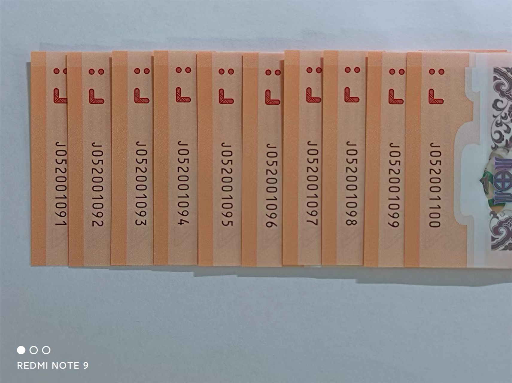 龙钞052001091-052001100标十 爱情号开头,尾95,尾95,尾001100三对,靓号很多