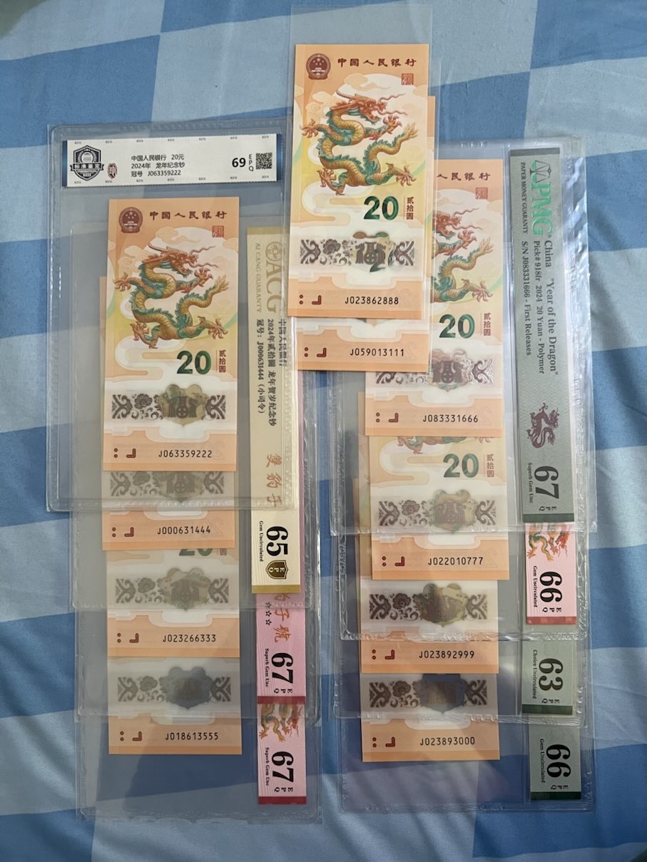 → 小龙钞无47豹子号全套10张评级钞十裸钞111 888