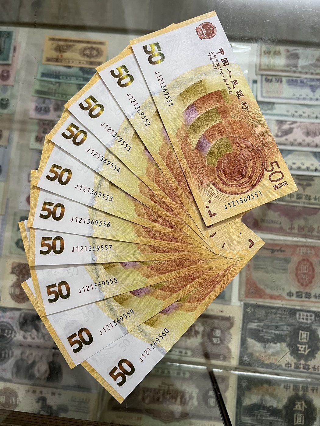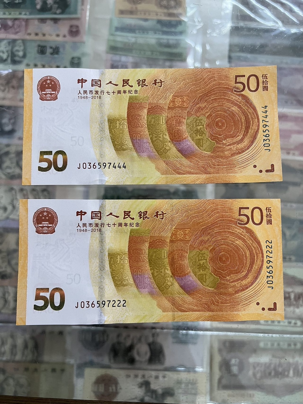 黄金70钞无47带豹子标十一组750,豹子2张280元,一起1030元。