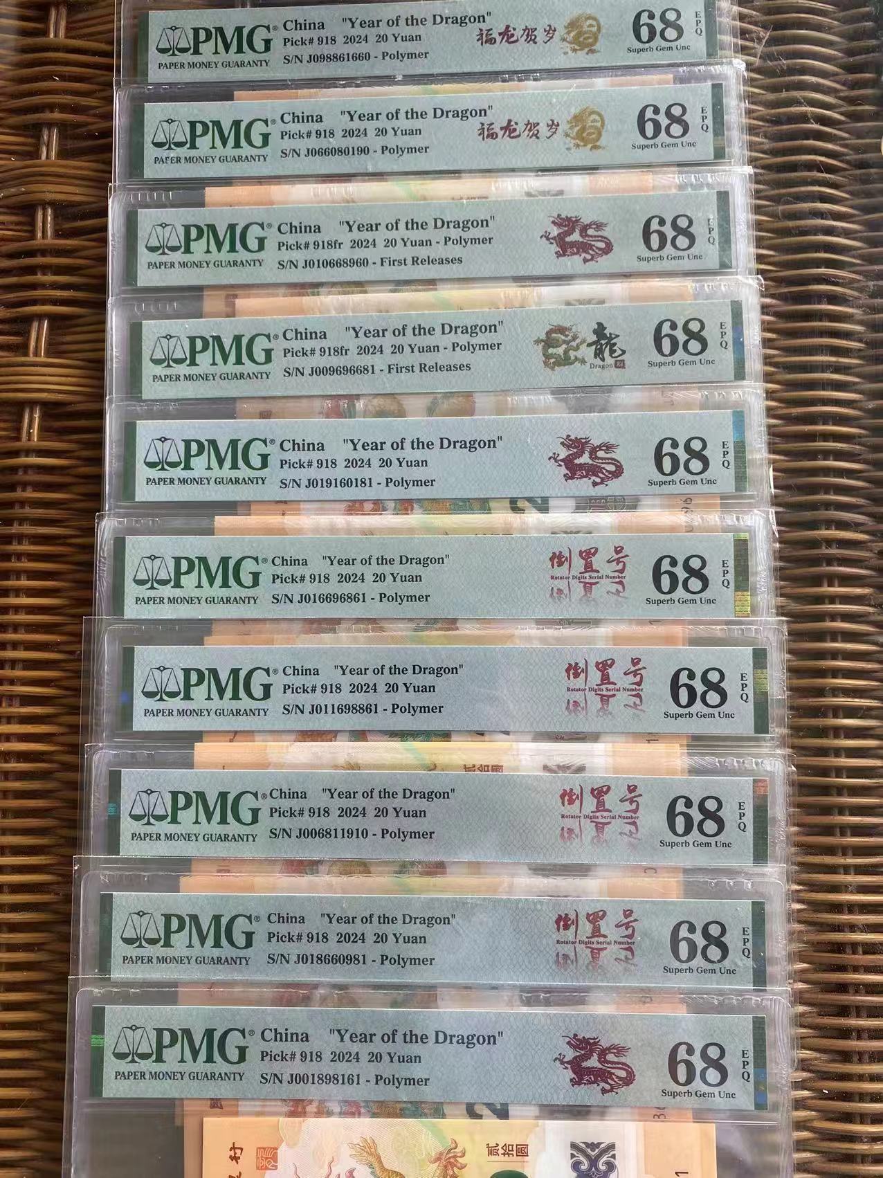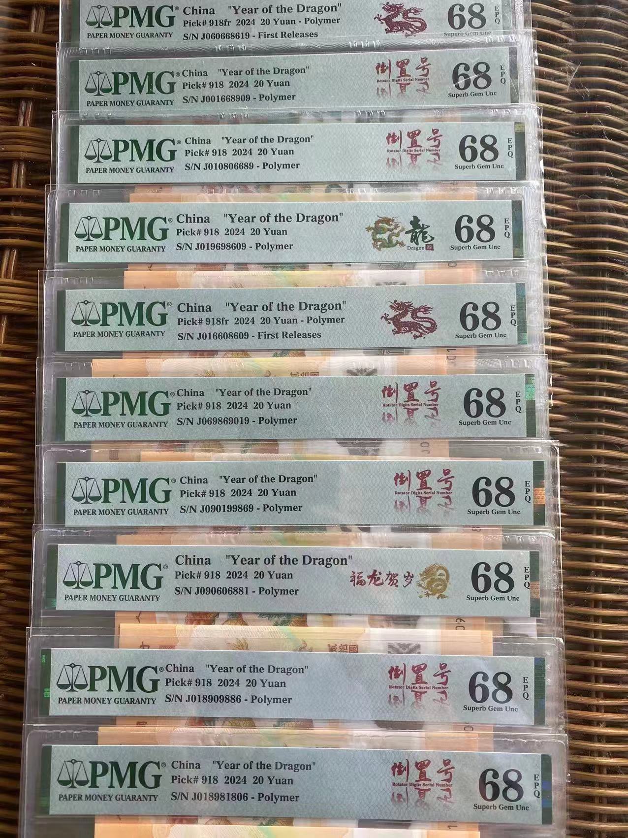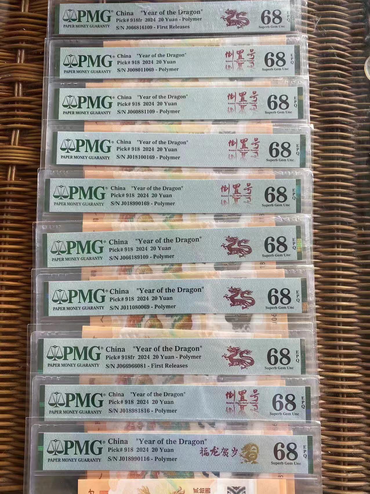 → 出售小龙钞倒置号PMG68分30张