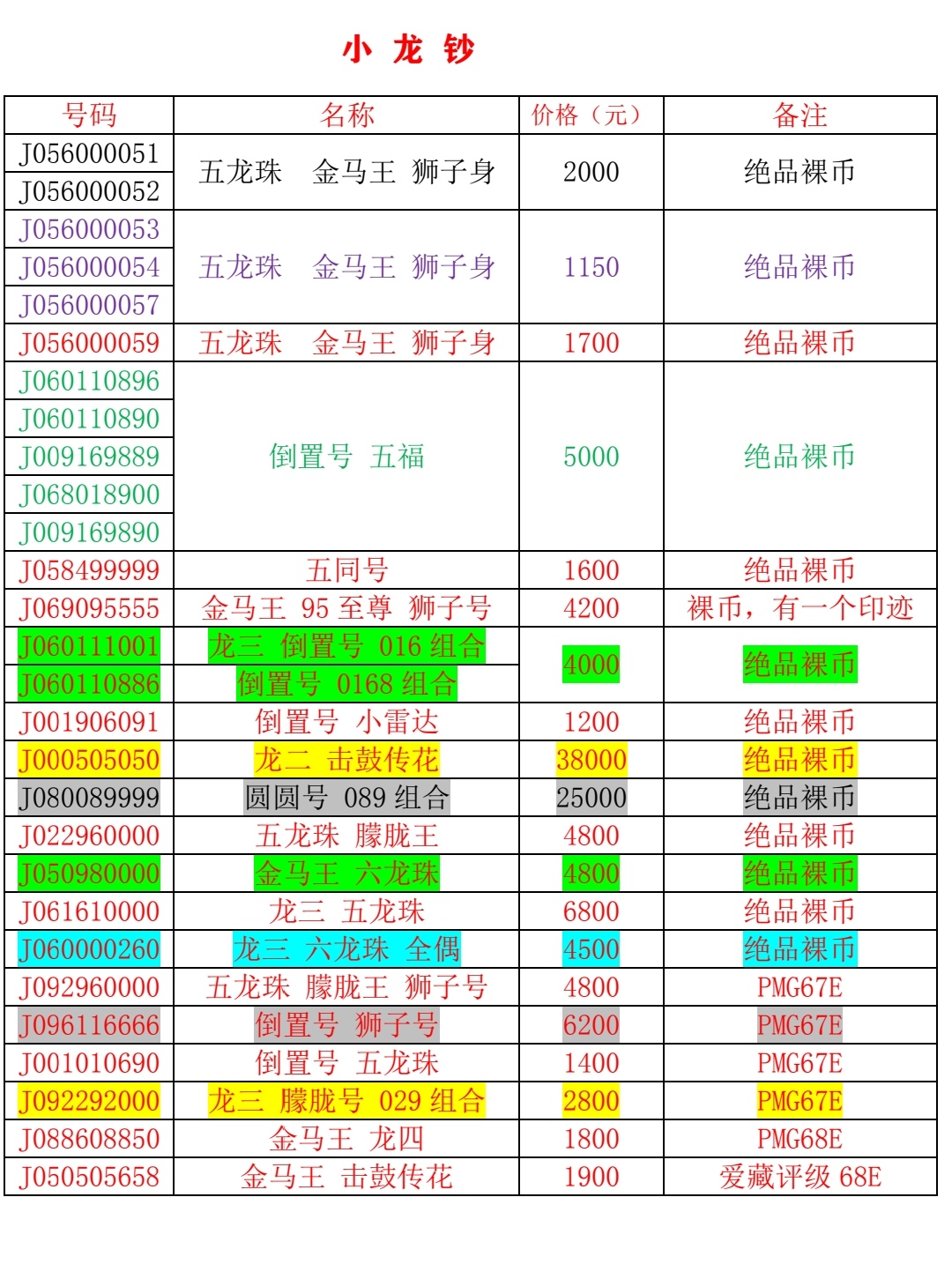 → 精品靓号小龙钞龙二 圆圆 倒置 金马王等